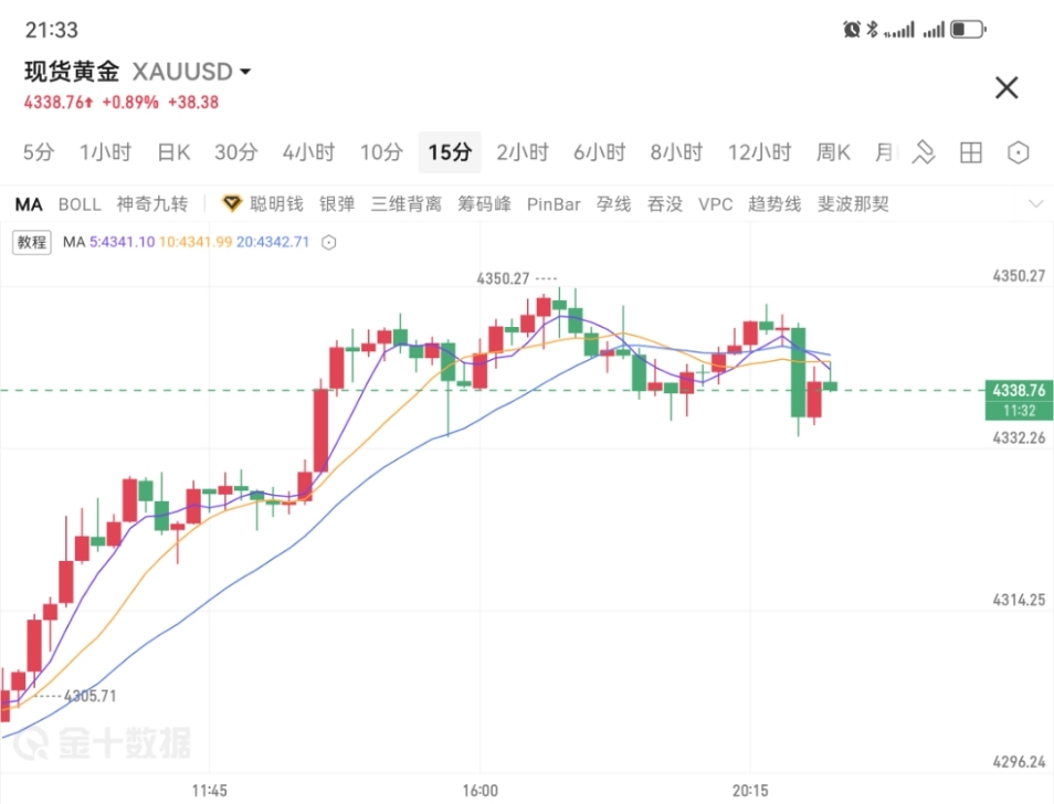 看着有点诱空的意思,暂时不要急着追空,即使做空也建议在4350-55这个区域去箜尝试,黄金再来波新高就完美了,目前这个节奏还是比较看好上探。下方回踩见4325-4330还是先接多。