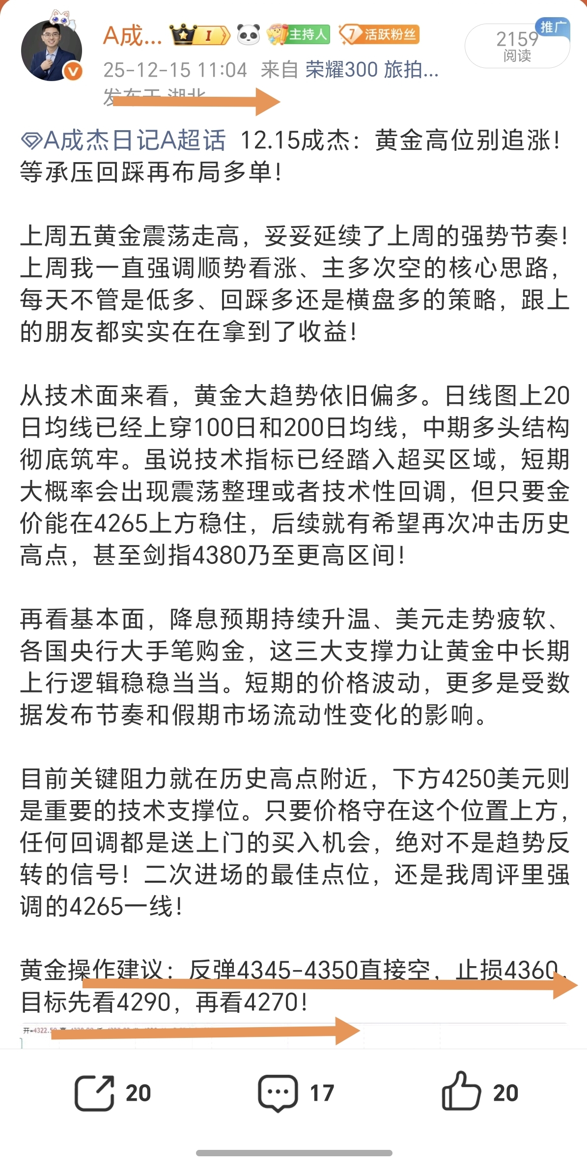 黄金小幅回踩,午后福利单已经狂赚10余点!标准手直接揣兜近1300刀,这肉吃得够