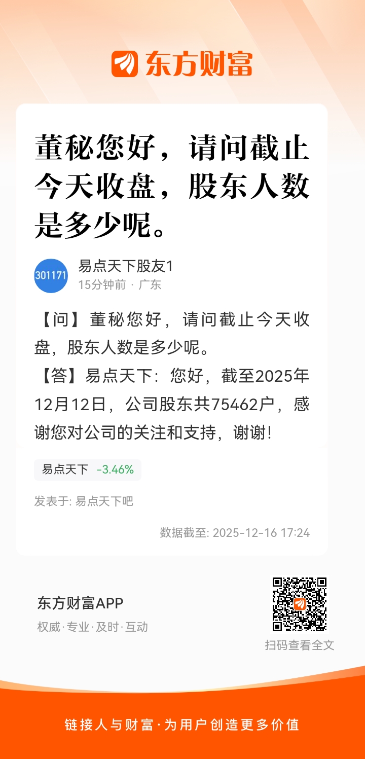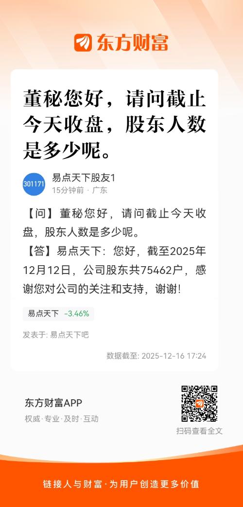 您好,截至2025年12月12日,公司股东共75462户,感谢您对公司的关注和支持,谢谢!