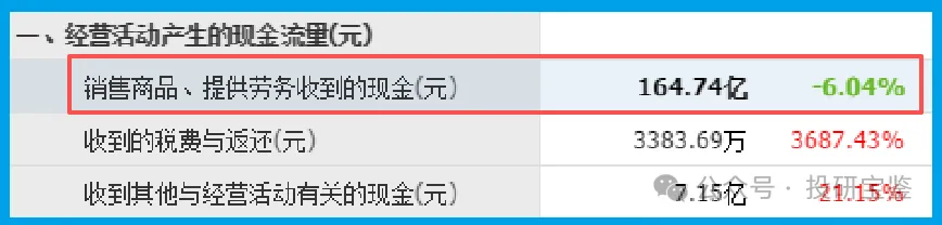 第二个矛盾,出现在“钱”上。财报显示,公司销售商品、提供劳务收到的现金总额高达164.74亿元。