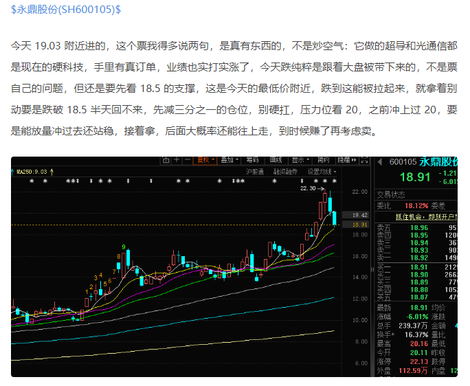 短期回调不慌:昨天跌 6.01% 看似多,但要知道它之前刚创过新高,11 月底还涨过 6.55%,总市值现在 276 亿,回调属于正常消化,资金面有分歧但活跃,虽然主力资金净流出 4.12 亿,但这么大的成交量说明资金关注度没减,之前 12 月 12 日还上过龙虎榜,机构净买入 1.09 亿。昨天我们低吸价格19.03附近,虽说有跌幅但是昨天大盘跌幅都那么多,主力顺势调整股价洗盘震荡下也是正常的,今天小君看反弹!昨天盘后解析也说了该股后续操作了。直接上干货