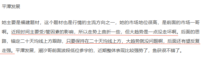 她近期连续逆势新高的阳线,表现非常强势啊,更主要的是完全符合潮汐哥前面的预判啊。近几周潮汐哥一直在分析她,讲了她有地位有趋势,趋势行情没走完,多些耐心陪着,这些观点。实际上,完全符合预判啊,鱼获自然是非常不错了。接下来的思路,她马上就出J管了,观察下能否走出加速走势,这样就非常舒服了。如果不强反弱,那就考虑减半。