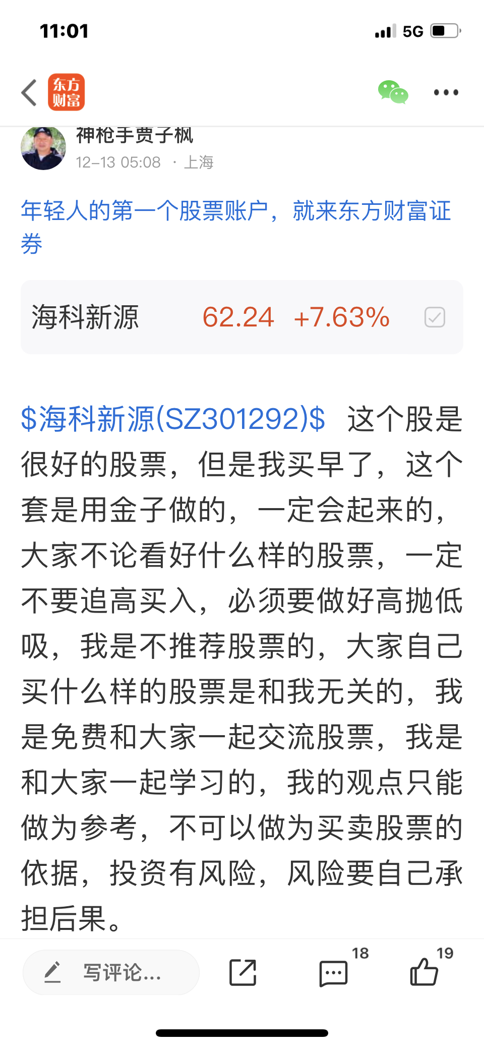大家可以看看我在上周的文章里写了,我以买早了海科源,我当时和大家说先不要进入,没有调整好,我和大家说这个的套子是用金子做的,我的观点是本周三是最好的加仓机会,大家可以关注我以前发表的文章。