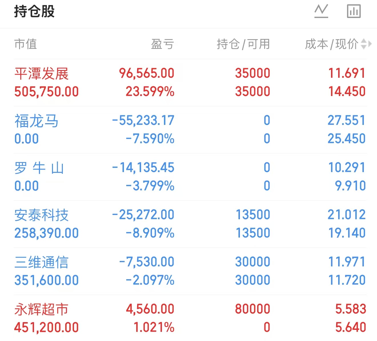 永辉超市:它的走势我觉得还是非常不错的,昨天走强,今天高开冲高后回落,加上板块其实还是不错的,所以选择了低吸,接下来只要消费还有机会,那么它就还能继续反弹。