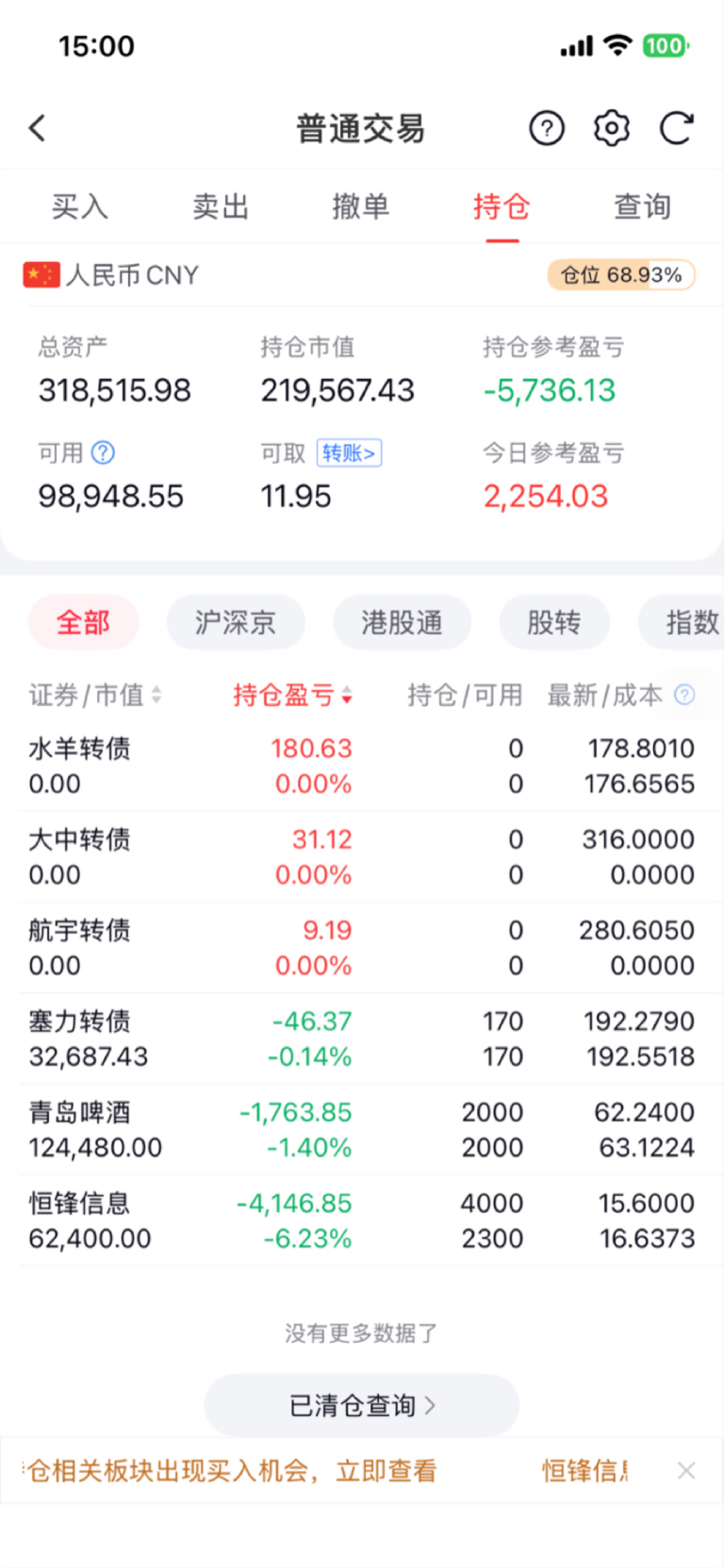恒锋今天到15.04的时候,想割肉了,受不了了,但是还是坚持了下来,15.58卖了半仓,看明天恒锋能否来个中阳