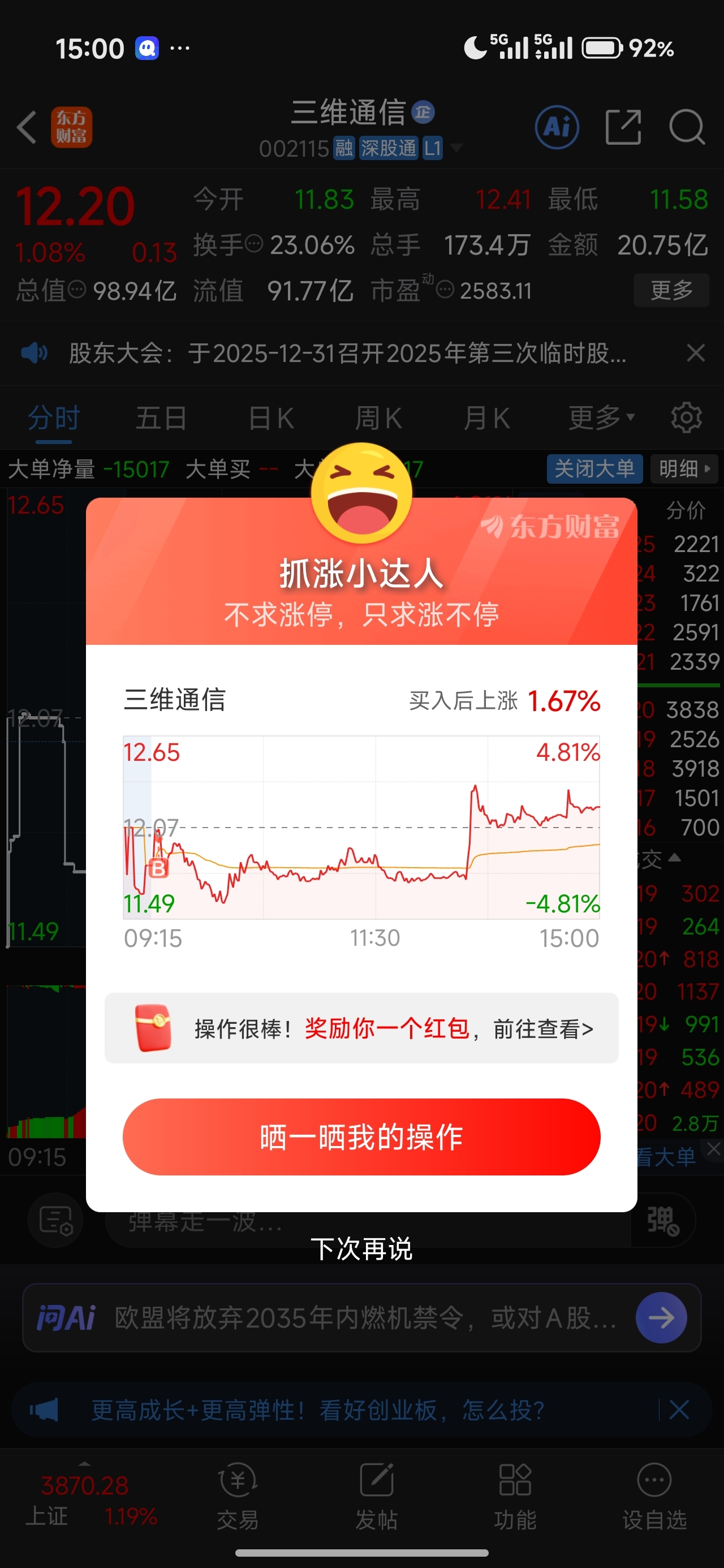 新开仓三维通信,今天商业航天集体熄火,希望明天能大涨吧。