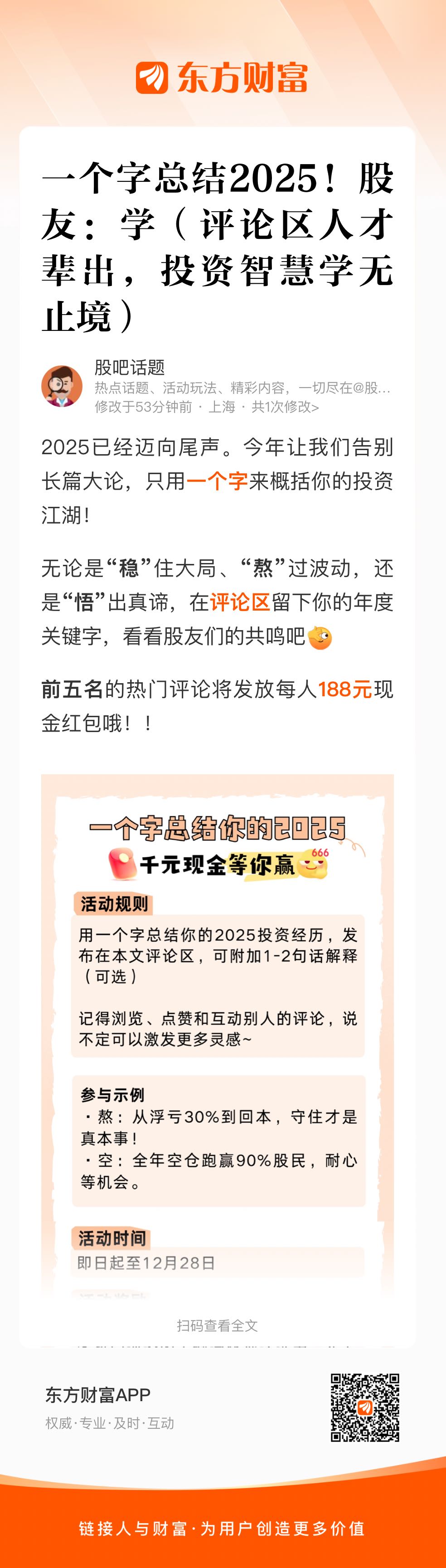 无论是“稳”住大局、“熬”过波动,还是“悟”出真谛,在评论区留下你的年度关键字,看看股友们的共鸣吧