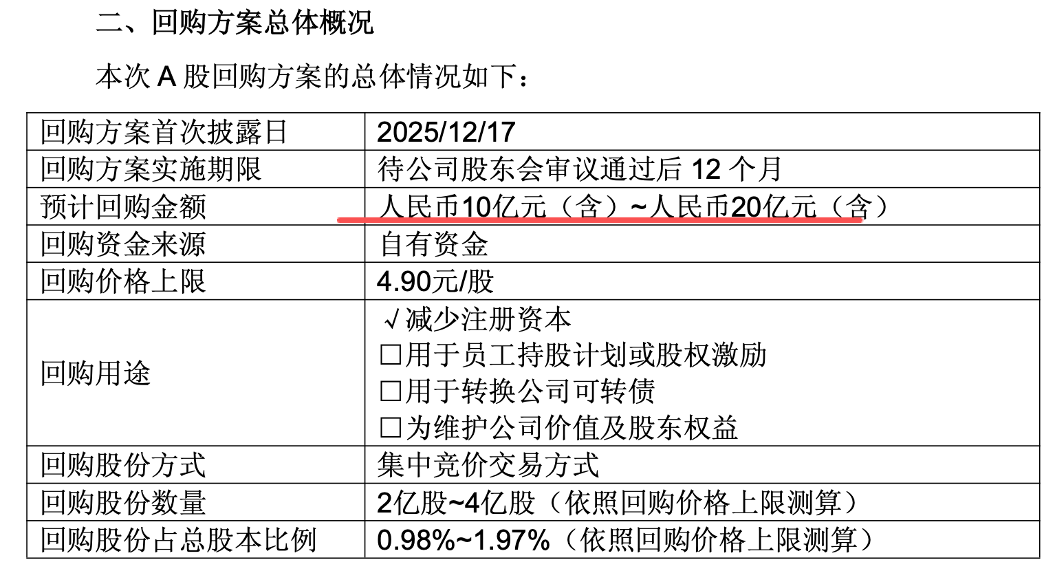 这个股票最近准备回购10亿到20亿元,回购全部用于注销。