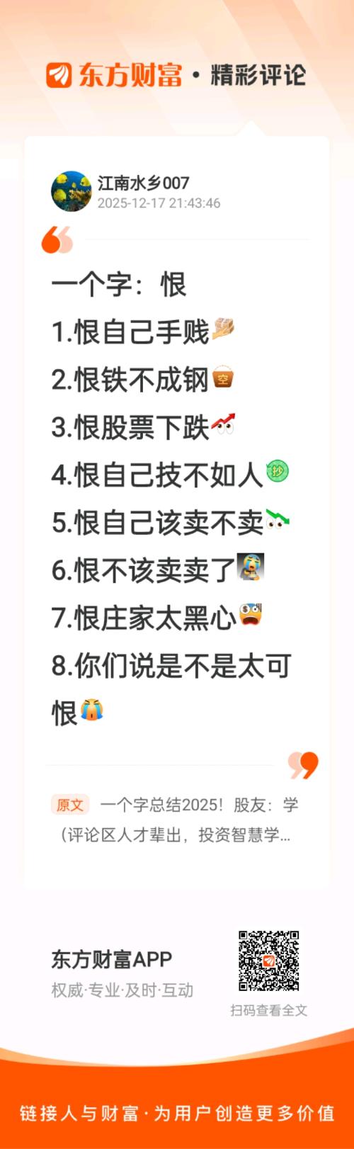 无论是“稳”住大局、“熬”过波动,还是“悟”出真谛,在评论区留下你的年度关键字,看看股友们的共鸣吧