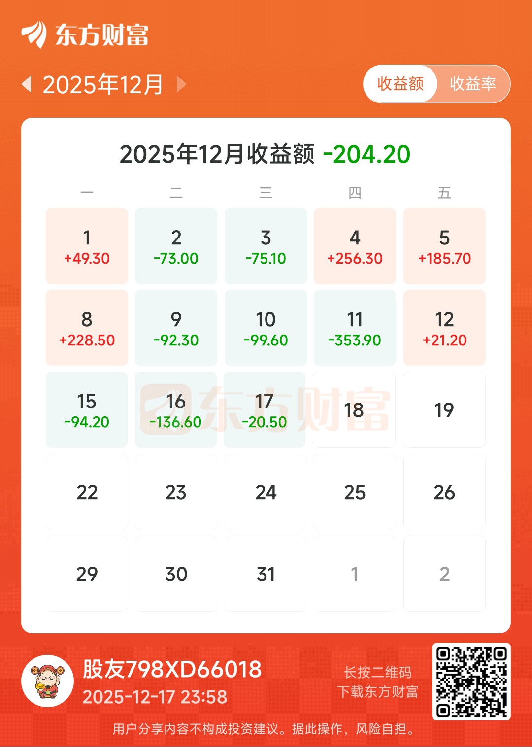 今天亏损20.50元