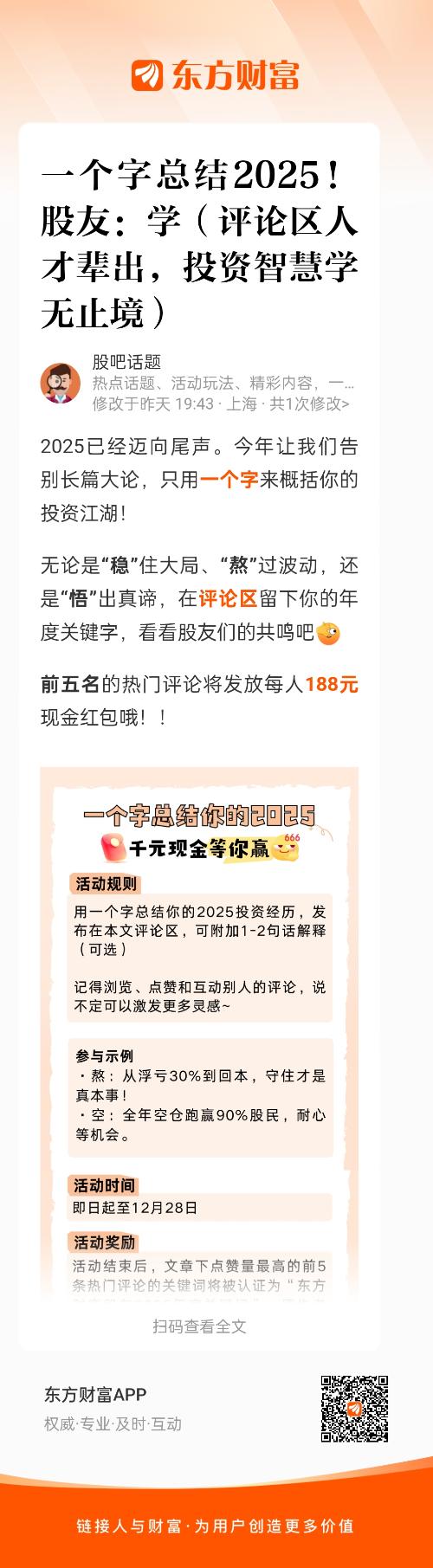 无论是“稳”住大局、“熬”过波动,还是“悟”出真谛,在评论区留下你的年度关键字,看看股友们的共鸣吧