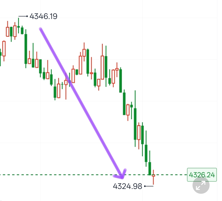 黄金,午夜跳水我们于4346布局的空,最低来到4325,21个点!