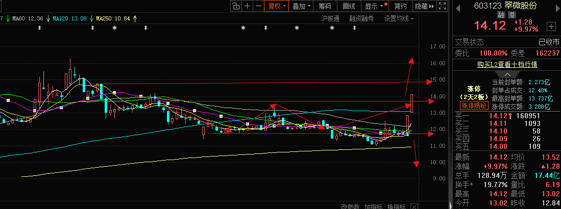 $翠微股份(SH603123)$这两天连续涨停,简单说就是政策+业务+资金三方面一起发力,政策方面商部、央妈等几个部门联合发了个文件,鼓励用数字人民币发红包来刺激消费。这是数字人民币第一次在这么高级别的里被点名推荐,说明国家要大力推广了,这两天主力资金净流入3个多亿,游资和沪股通都在买。股价突破了前期震荡区间,技术面也走好了,从业绩看,公司业绩仍处于亏损状态,但亏损幅度在收窄,经营现金流有所改善,基本面一般。