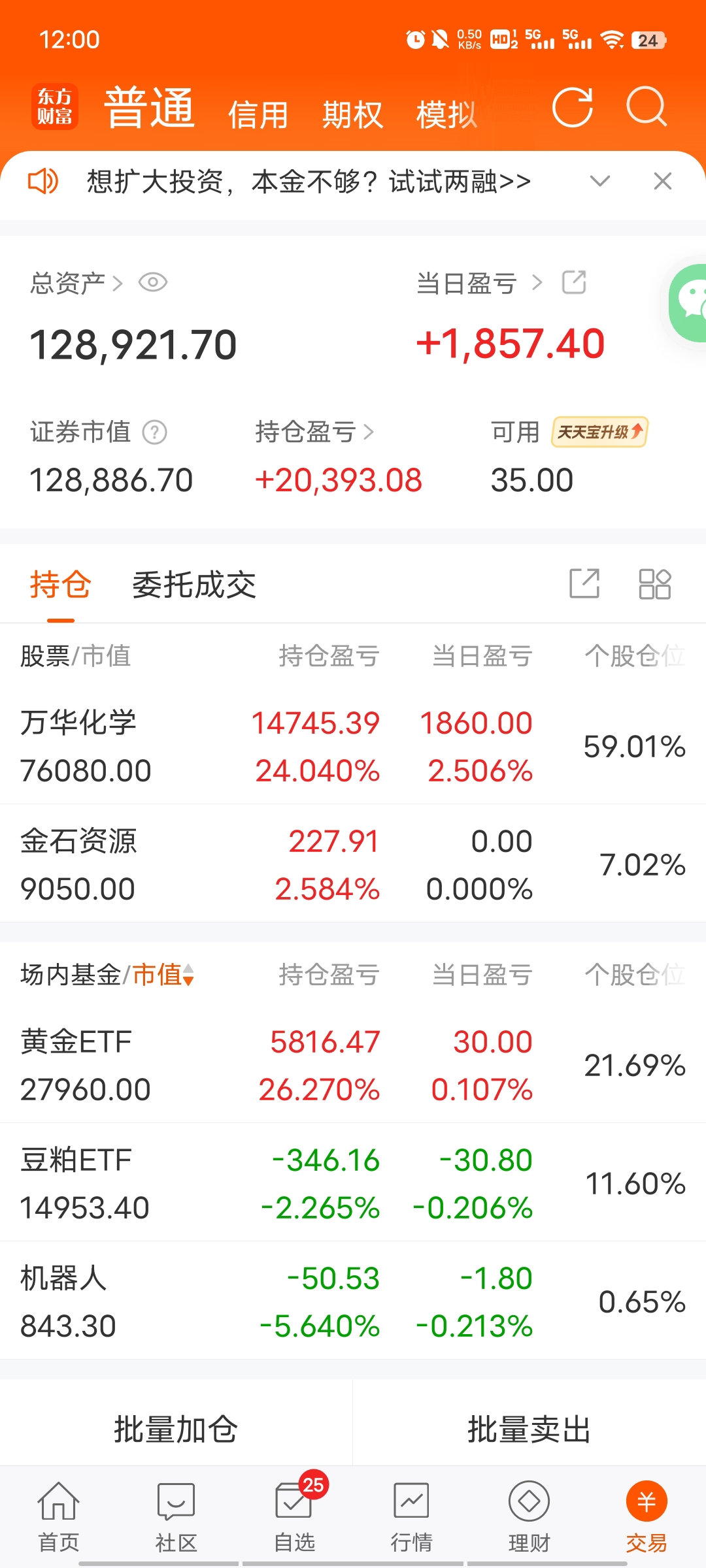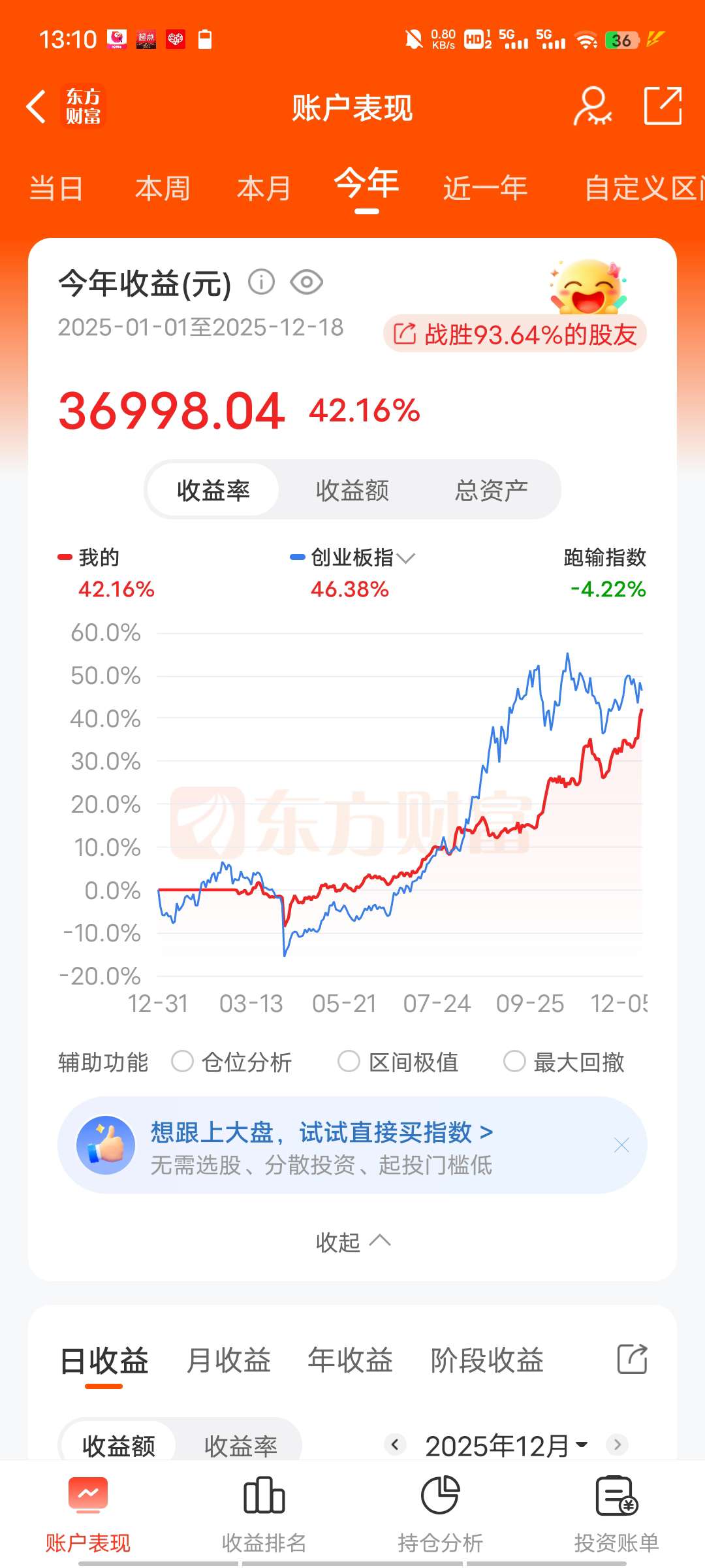 今年3月份清仓以后一直空仓,也不知道为什么就是没有买,突然在4月大跌,大胆抄底3天满仓,剩下就是一直持有,美股etf没挣到钱就跑路了,其他也陆陆续续跑路了,到10月份盈利20个点整体。后来买了陕西煤业,10多个点跑了还手万华化学。至于逻辑,反内卷。没参与最热的科技,也没抄底白酒。整体满意。