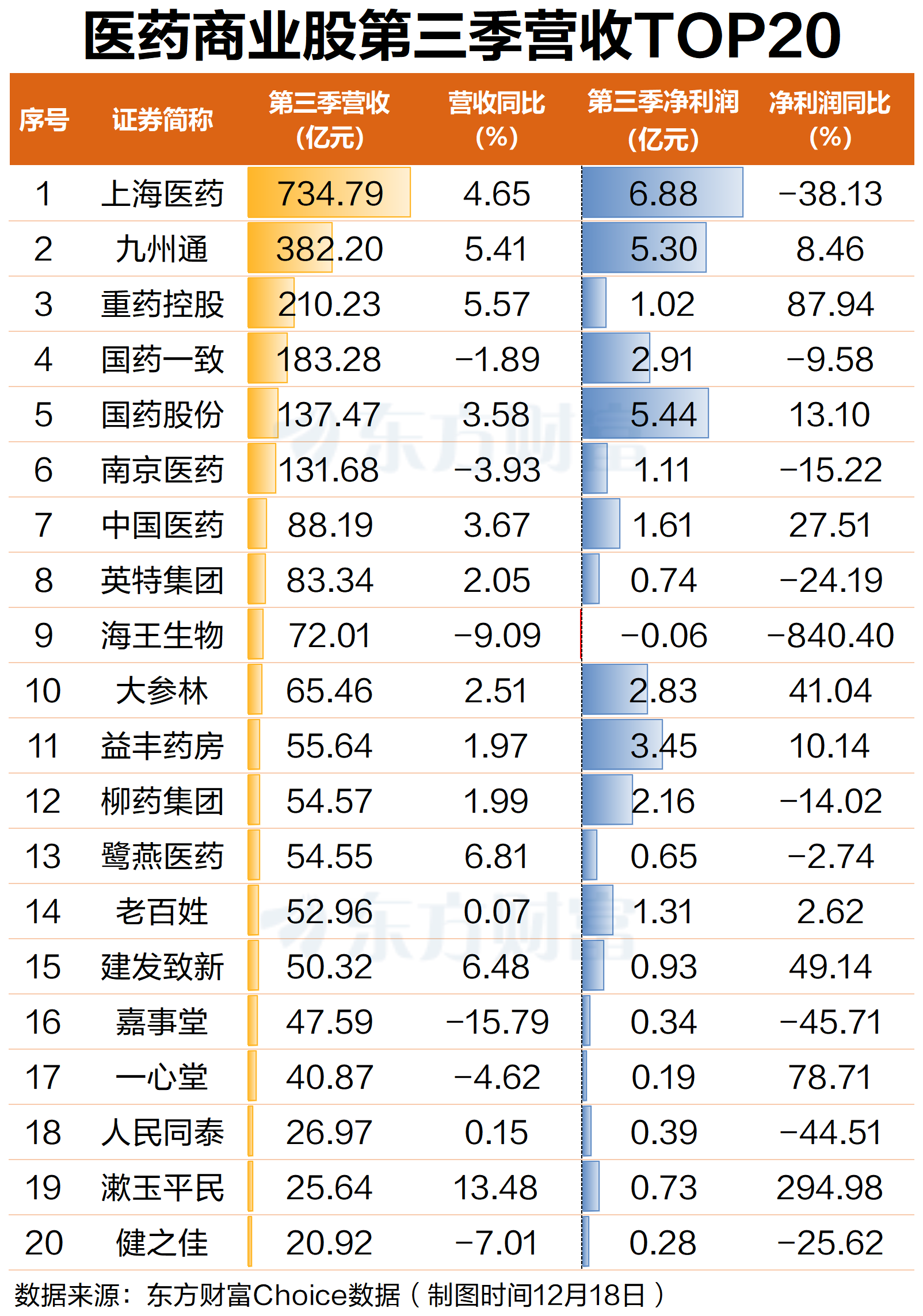12月18日,医药商业掀起涨停潮,领涨A股行业板块。截至早间收盘,板块上涨4.22%,华人健康20CM涨停,漱玉平民涨超10%,英特集团、塞力医疗、鹭燕医药、重药控股涨停,达嘉维康涨超7%,开开实业、药易购、合富中国等涨超4%。