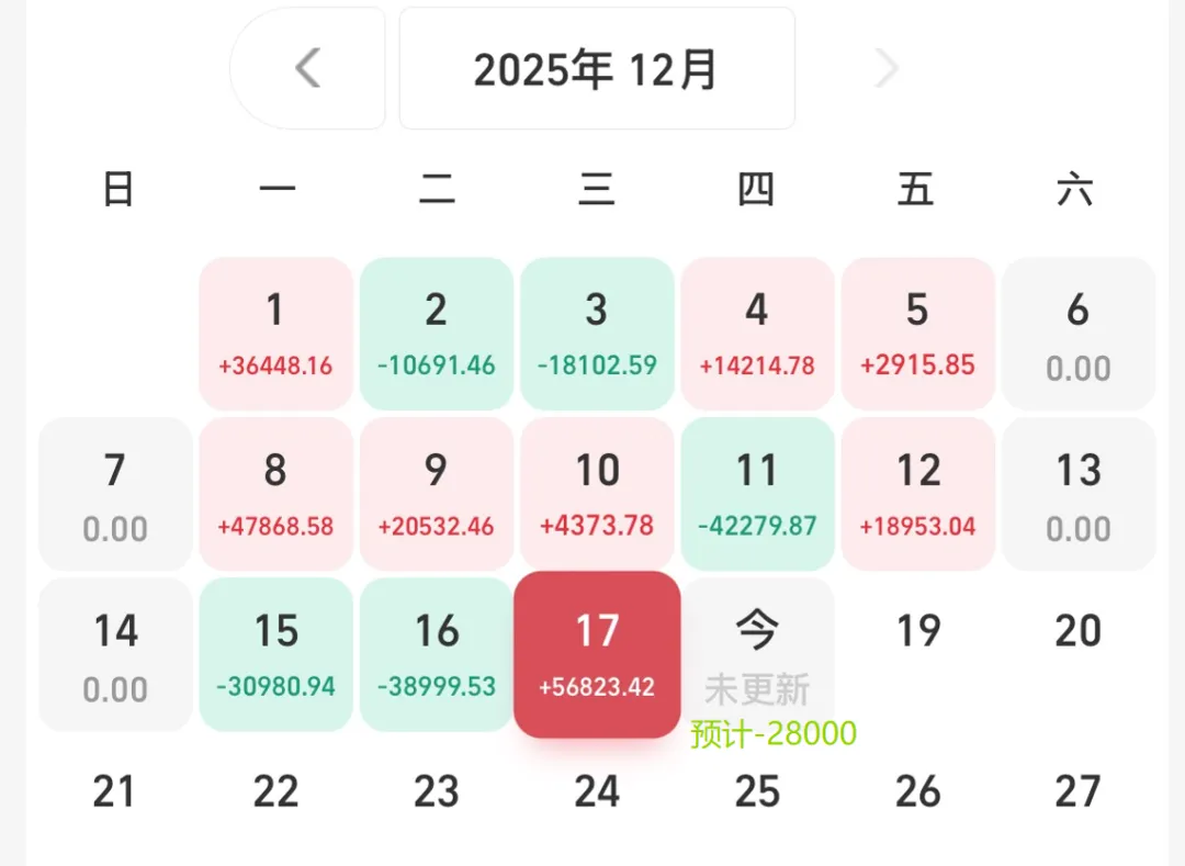 今天预计-28000,预计-1.7%,大跌1.7%,我不能接受。今年以来+553000,今年以来+51.6%,12月单月目标+20%。