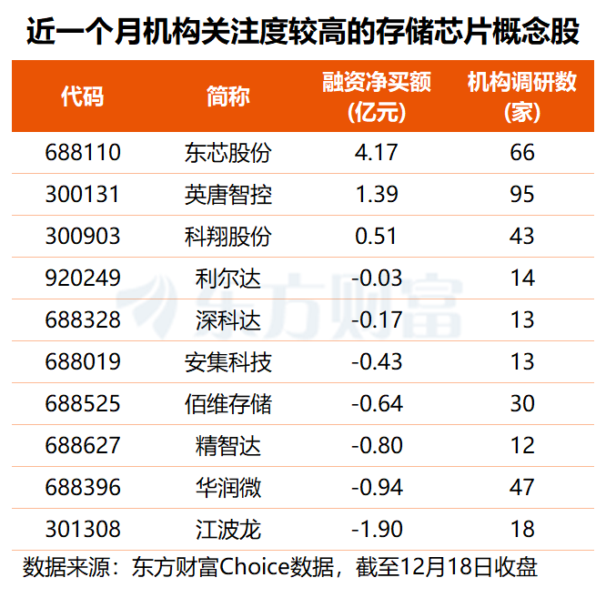 值得注意的是,上述机构高度关注的概念股中,东芯股份、英唐智控、科翔股份还获得了融资客的青睐,近一个月,这3股分别获融资净买入4.17亿元、1.39亿元和5137.38万元。