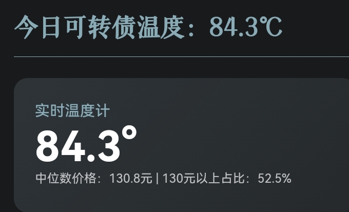 今天的可转债温度84.3度,130元以上的可转债,202只占比52.5%,低于1