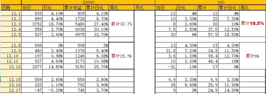12.17号战绩分享20000u昨日负47u,日化在-0.2%300u昨日跑了9