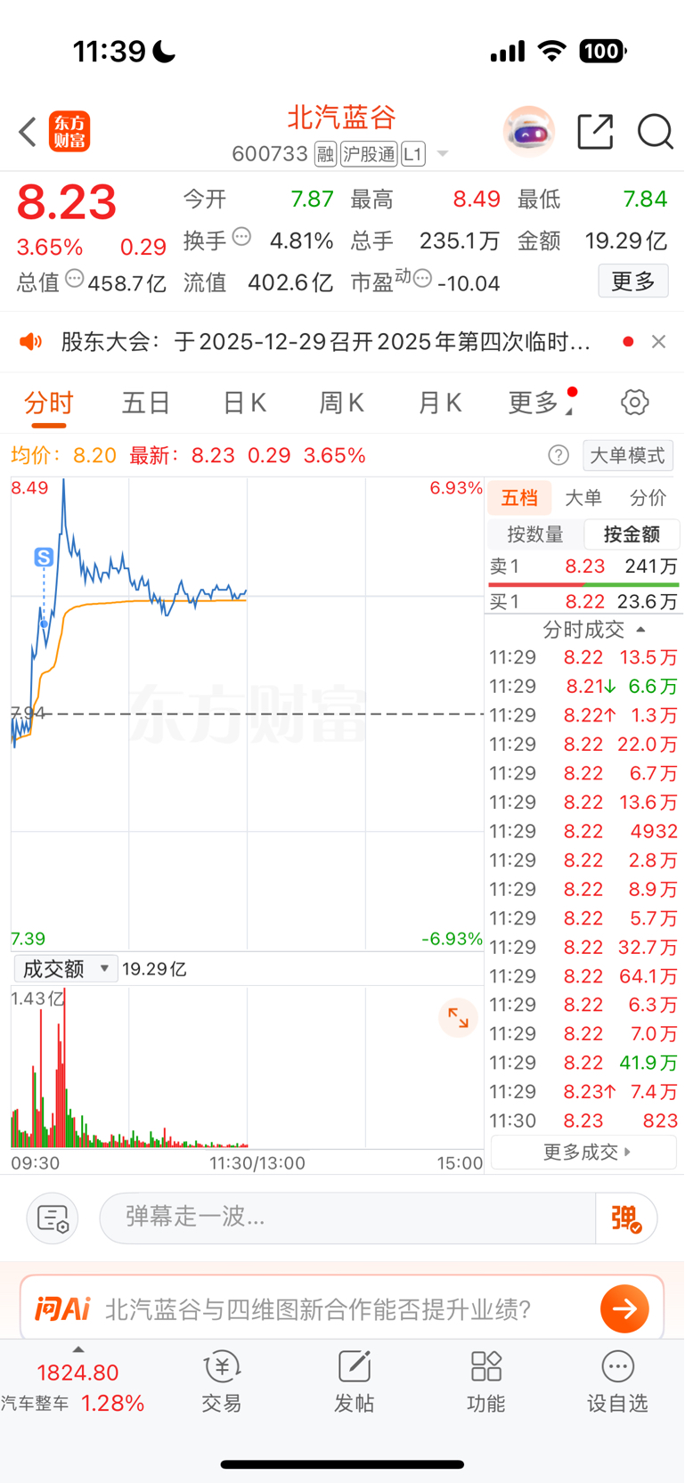 北汽昨天买的今天早上卖了 无人驾驶 世宝是龙头 北汽回调在进