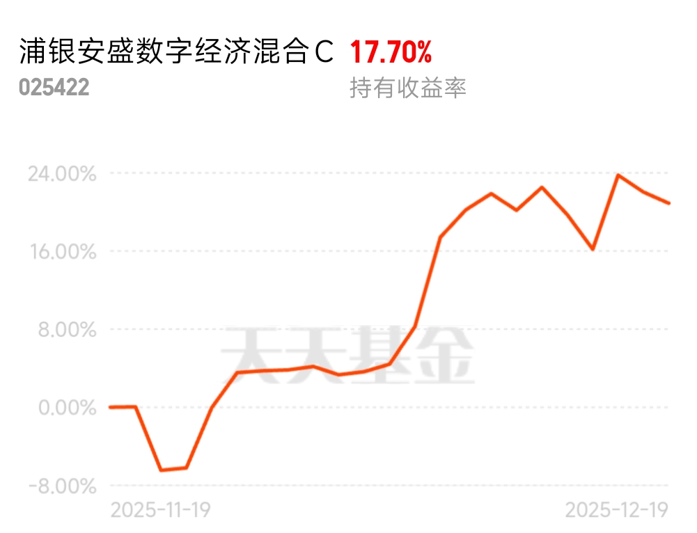 #2025年 你的投资战绩如何?,2025年 你的投资战绩如何?# $浦银安盛数字经济C$: 跌的少的CPO今天CPO板块迎来调整,之前因为怕高没敢上车的朋友,机会可算是来了, 浦银安盛数字经济近一个月在同类基金里涨得一骑绝尘,弹性拉满,表现远超我的预期。