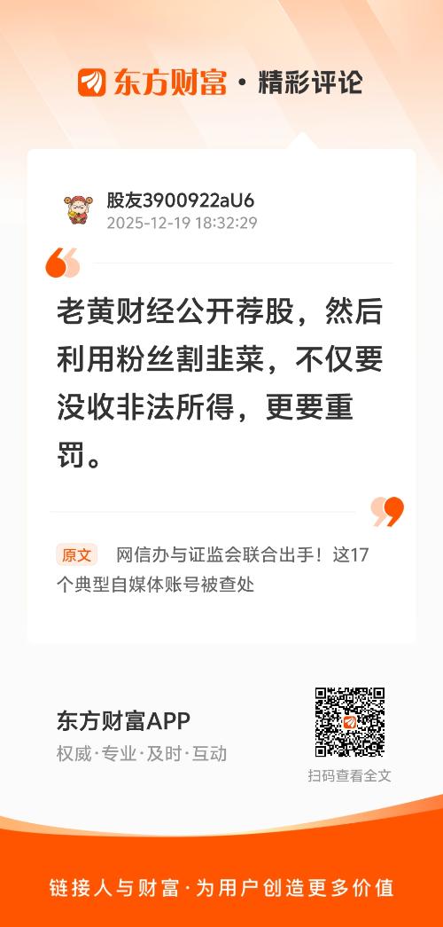 也需要明确的是,无论是自媒体账号、网络平台,还是广大投资者,都应遵守法律法规,恪守行业底线,自觉维护资本市场的正常秩序。