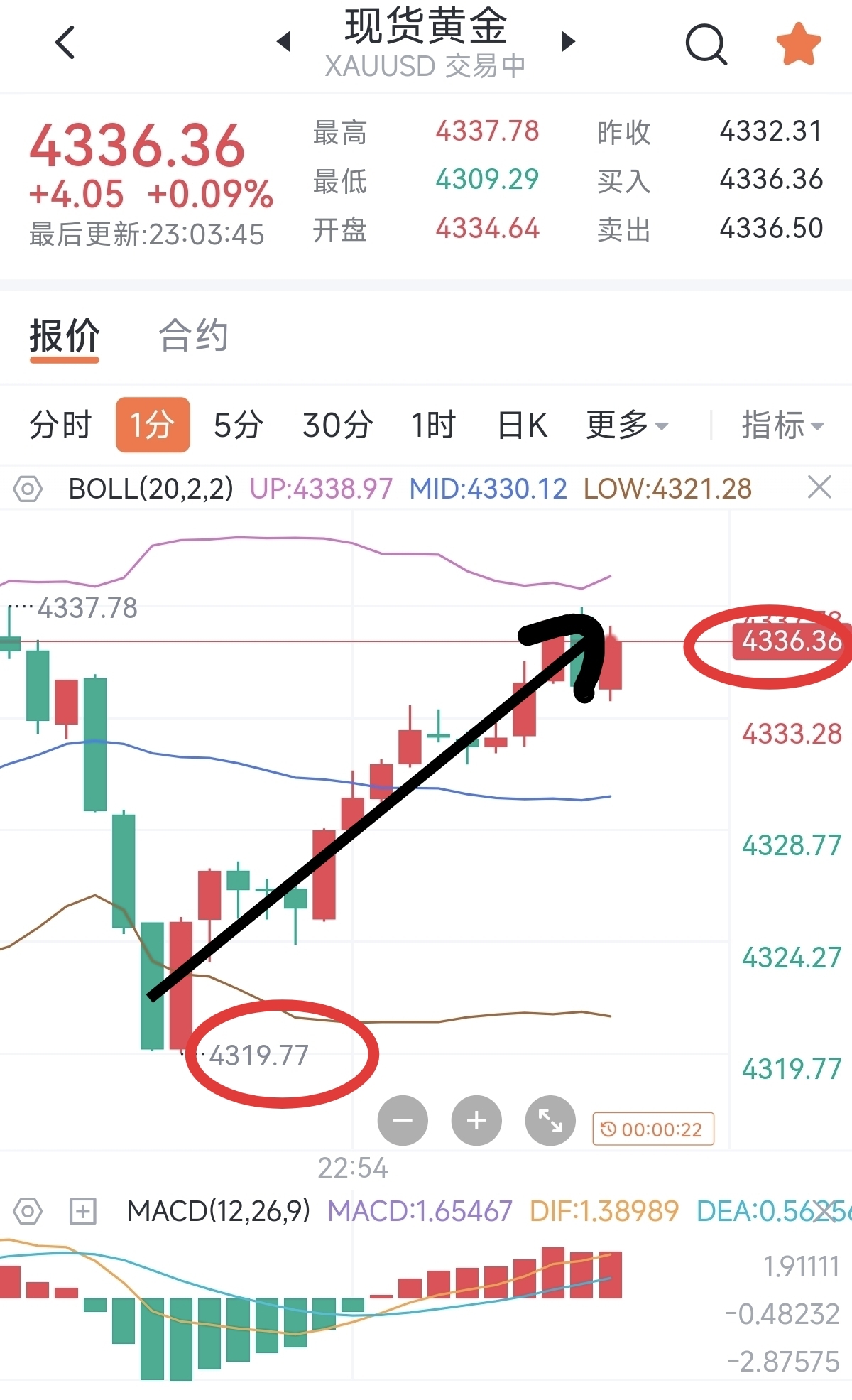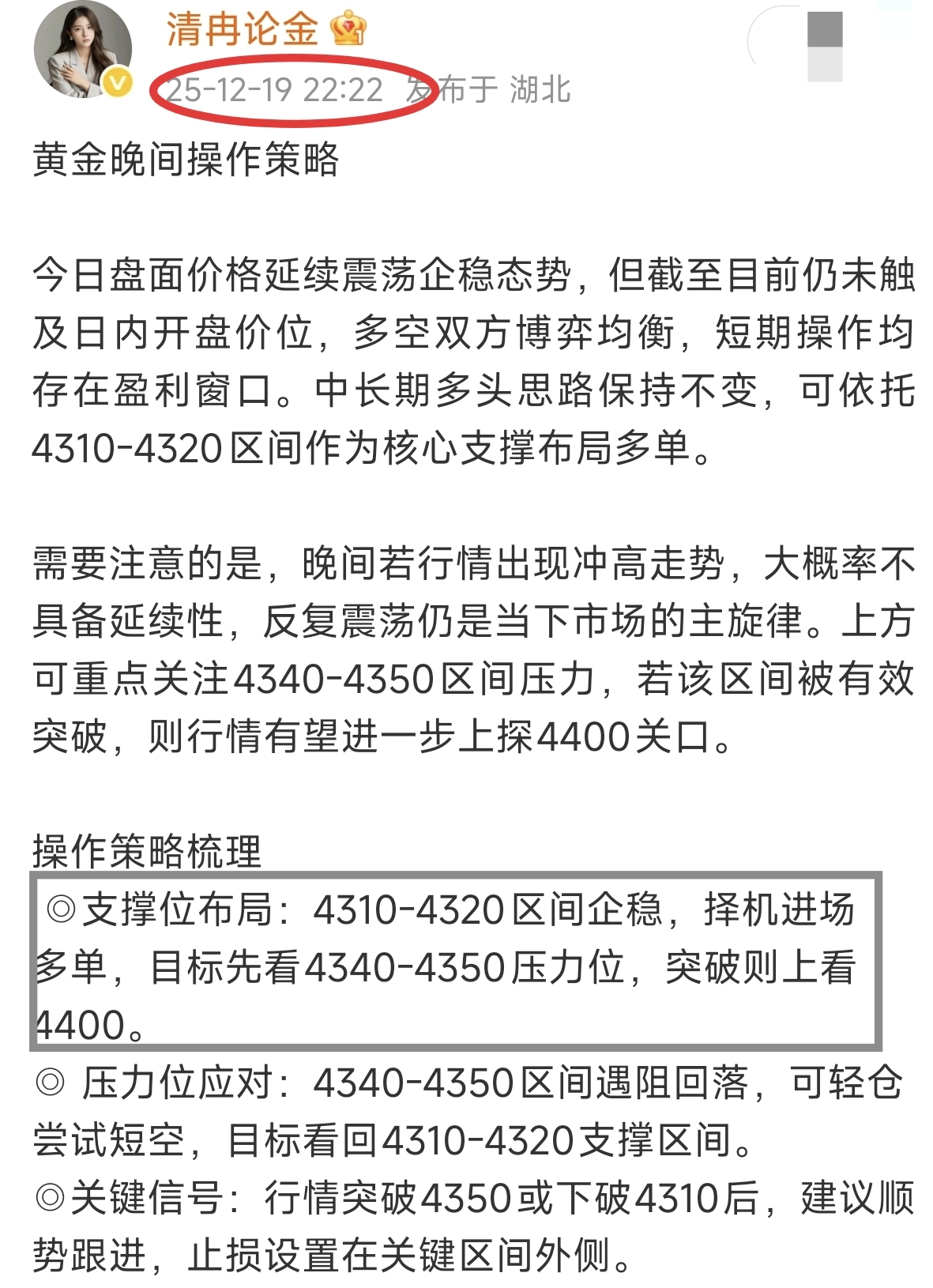 晚间策略精准兑现!依托4320关键支撑布局入场,行情稳步上行至4340目标区间,