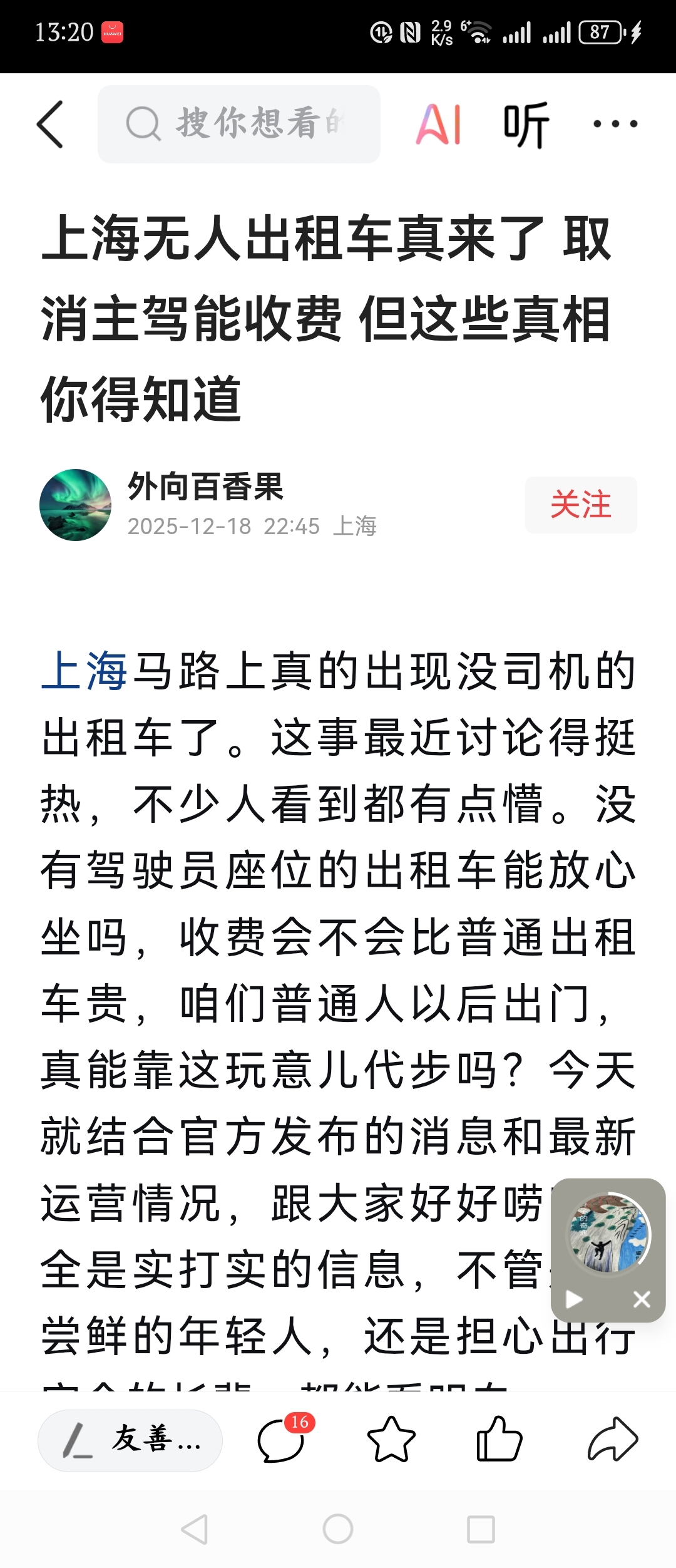 上海无人驾驶车真的开始上路了!你有兴趣可以去体验一下奥