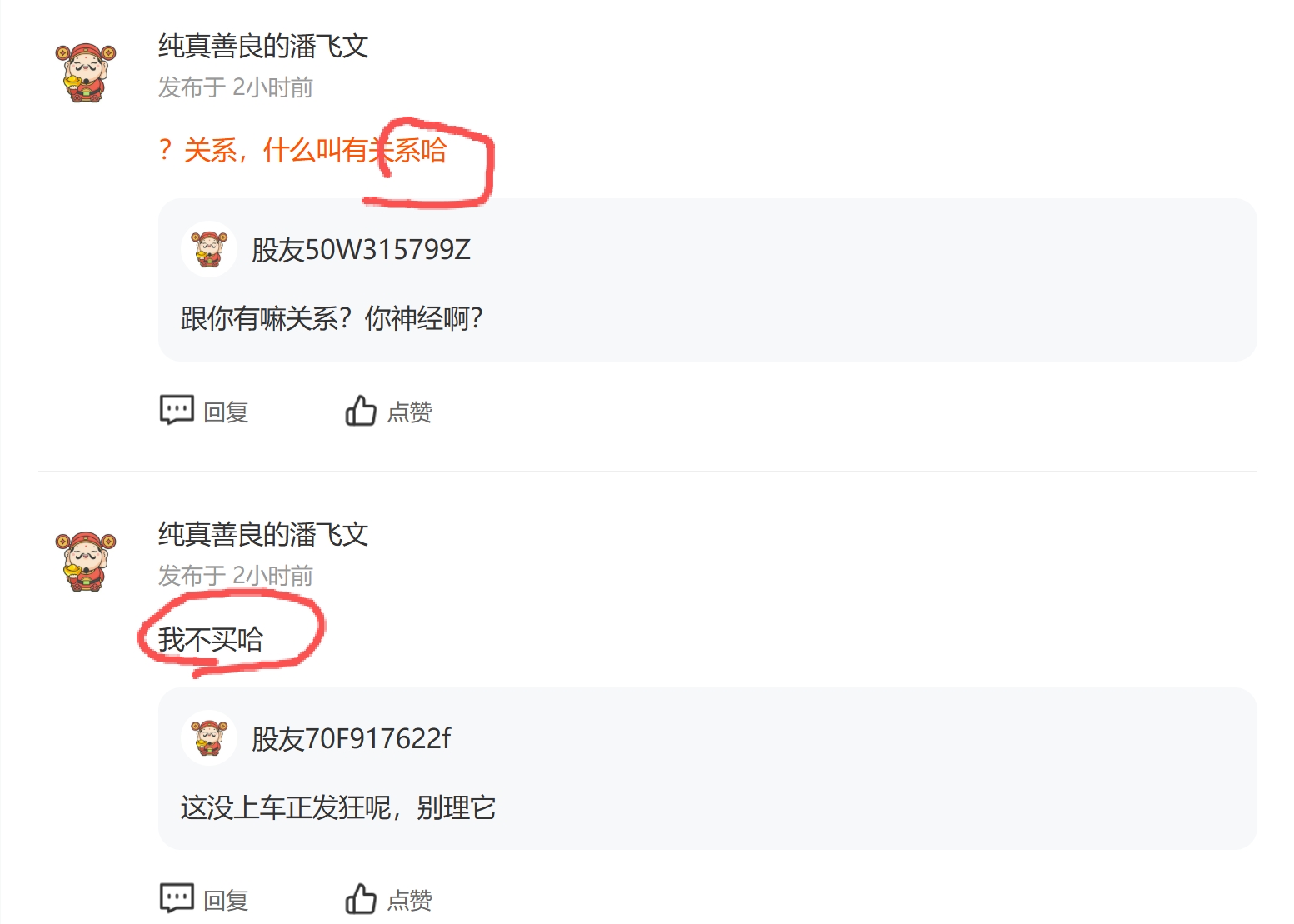 2. 纯真善良的潘飞文ID:12月20日一天没发帖,可能是太累了,一人手搓不了3个号,“操作不过来”,哈哈哈。但是这个号,有时白天主要由“股海善人”操作,带“哈”,有时候会贴到其他人操作,话风不带“哈”。