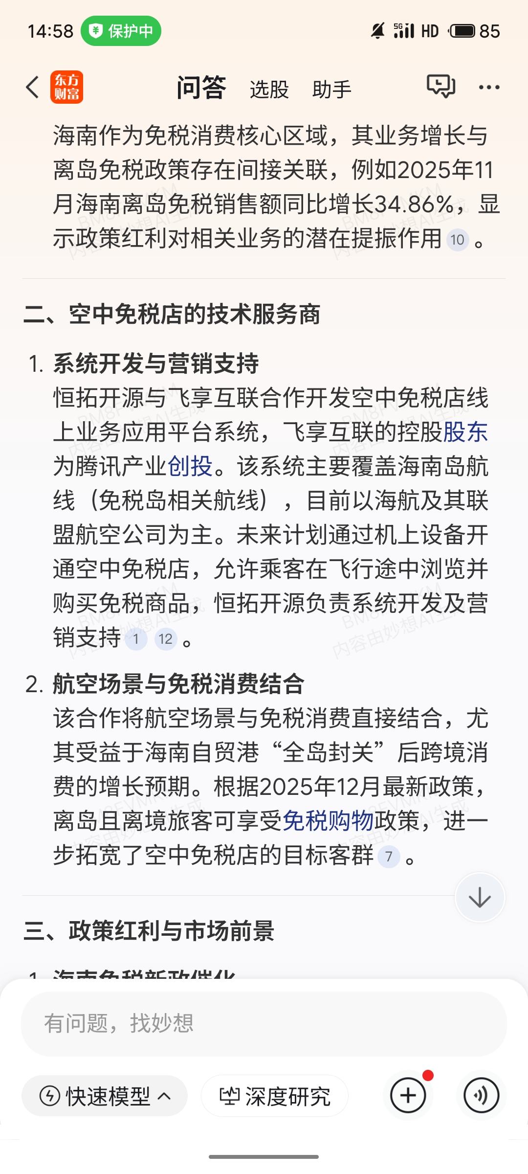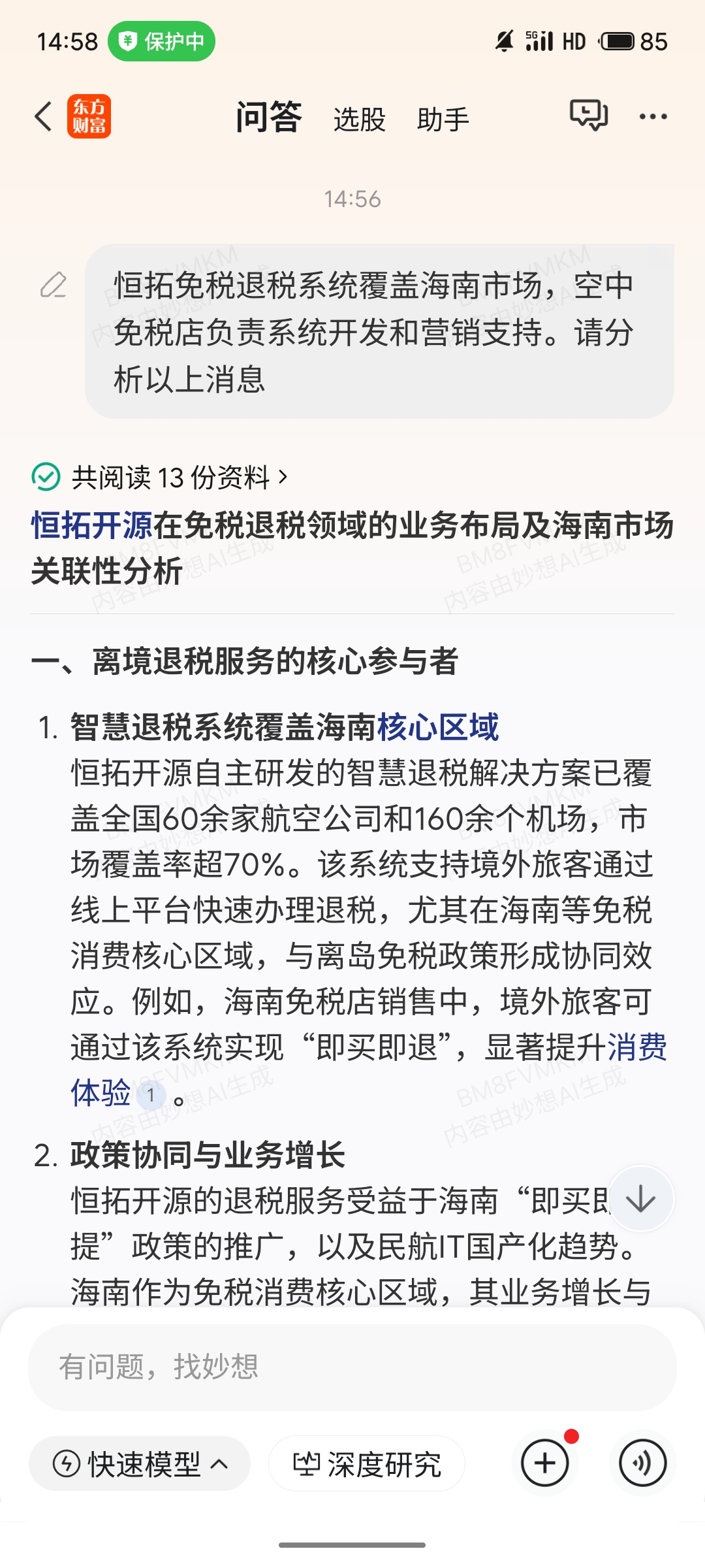 恒拓开源通过智慧退税系统和空中免税店布局,深度参与海南免税市场。
