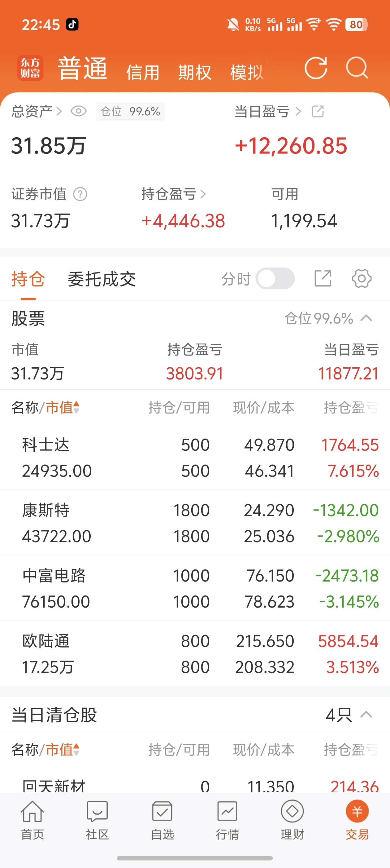 12月22日盈利1.2操作卖出套利股,加仓欧陆通,康斯特