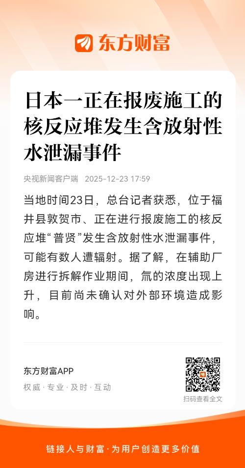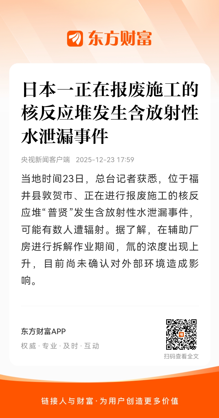 当地时间23日,总台记者获悉,位于福井县敦贺市、正在进行报废施工的核反应堆“普贤”发生含放射性水泄漏事件,可能有数人遭辐射。
