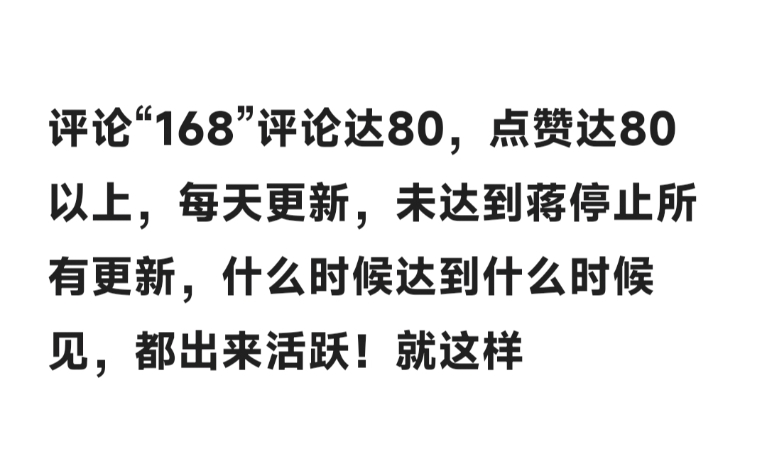 都出来活跃活跃,让我看看有多少,未达到点赞80评论80条以上,今晚开始之后停止更