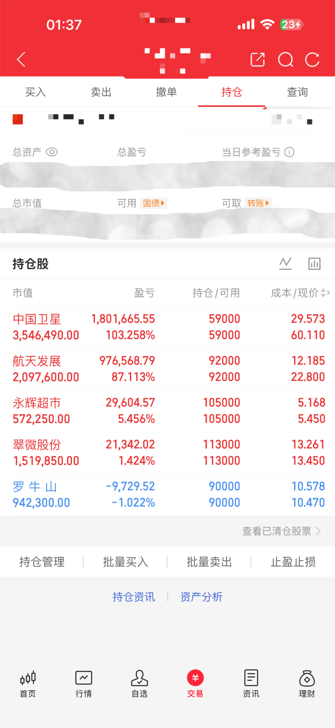 中国卫星:商业航天板块的趋势龙头,经历了航天板块炒作的好几个小周期屹立不倒,但是随着情绪龙头航天机电的跌停,这个票在板块的退潮当中也难以幸免,昨日早盘创出67.60的新高后便遭遇到了猛烈的抛压,股价尾盘大幅翻绿收跌,今天如果航天板块走不出像样的反弹的话,中国卫星这个票要落袋一部分了。