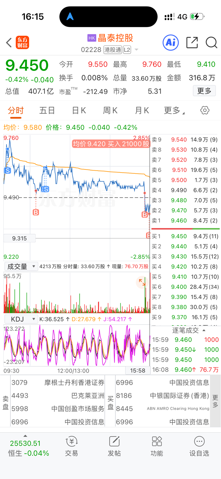 $晶泰控股(HK|02228)$ 尾盘接回来点,今天失误是51挂单没有撤,给自己提个醒 没时间盯盘的时候不要挂单。
