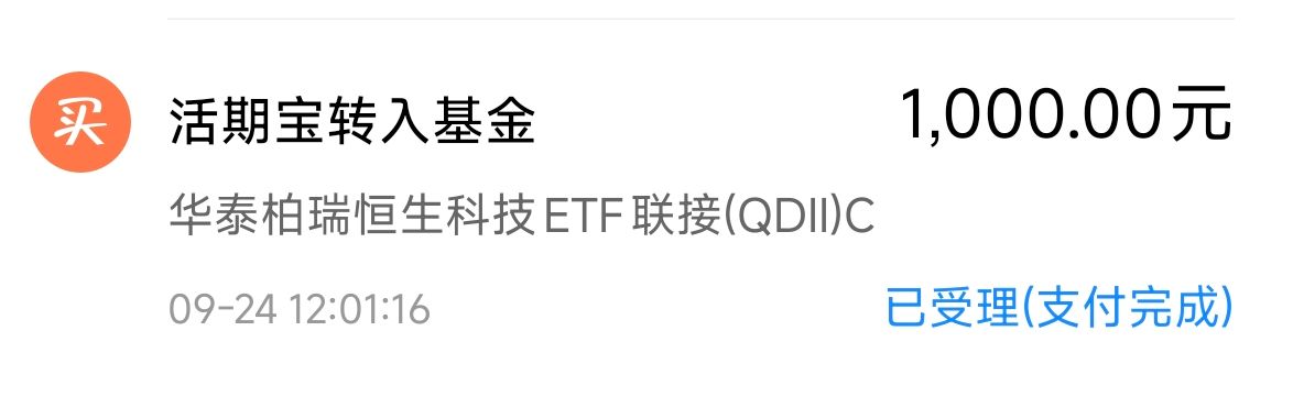 今日加仓$华泰柏瑞恒生科技ETF联接(QDII)C(OTCFUND|015311)$1000元,指数昨天探底回升稳稳守住了10日均线支撑,震荡不破支撑今日也是如期迎来了反弹,并且盘中放量突破阻力也是再次确认了向上趋势。如今中国资产火热,也是吸引外资持续入场,“木头姐”就豪掷2100万美元买入阿里等中概股,足以证明当前中国资产的价值。