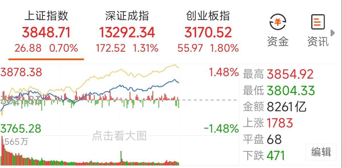 创业板指昨日收明显下影线,有修复趋势,今日低开早盘也是直接震荡高走,盘中直接突破前高阻力,就是量能不太足,尾盘要重点关注能否稳住。指数整体趋势向上,量不足短期或有波动,之后更看震荡上行。