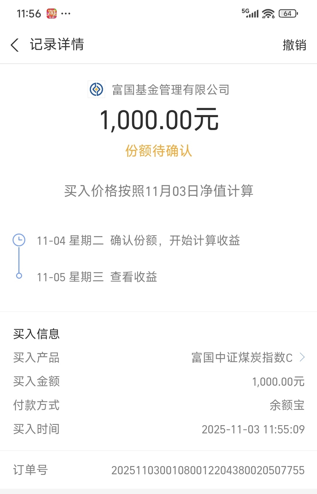 从行业动态上看,煤炭行业近年来一直在进行结构调整和转型升级。一方面,落后产能逐步淘汰,行业集中度有所提高,大型煤炭企业的竞争力不断增强。另一方面,煤炭清洁利用技术不断发展,煤炭在能源结构中的地位更加稳固。这些积极变化有助于提升煤炭行业的整体盈利水平,为$富国中证煤炭指数C$所跟踪的中证煤炭指数带来上行动力,今天先布局上车了, 希望后面能继续吃肉了。