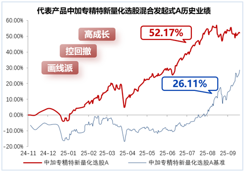 比如$中加专精特新量化选股混合发起式A(OTCFUND|021990)$,自2024年11月成立以来净值增长超52%,跑赢业绩基准26个百分点(数据来源:基金定期报告,截至2025年9月30日),验证了中加多因子量化模型的有效性。