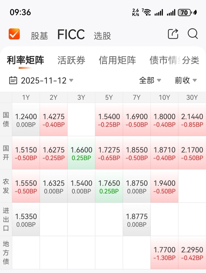 观察利率债:15红、6平、2绿。(红色,是涨。绿色,是跌。)