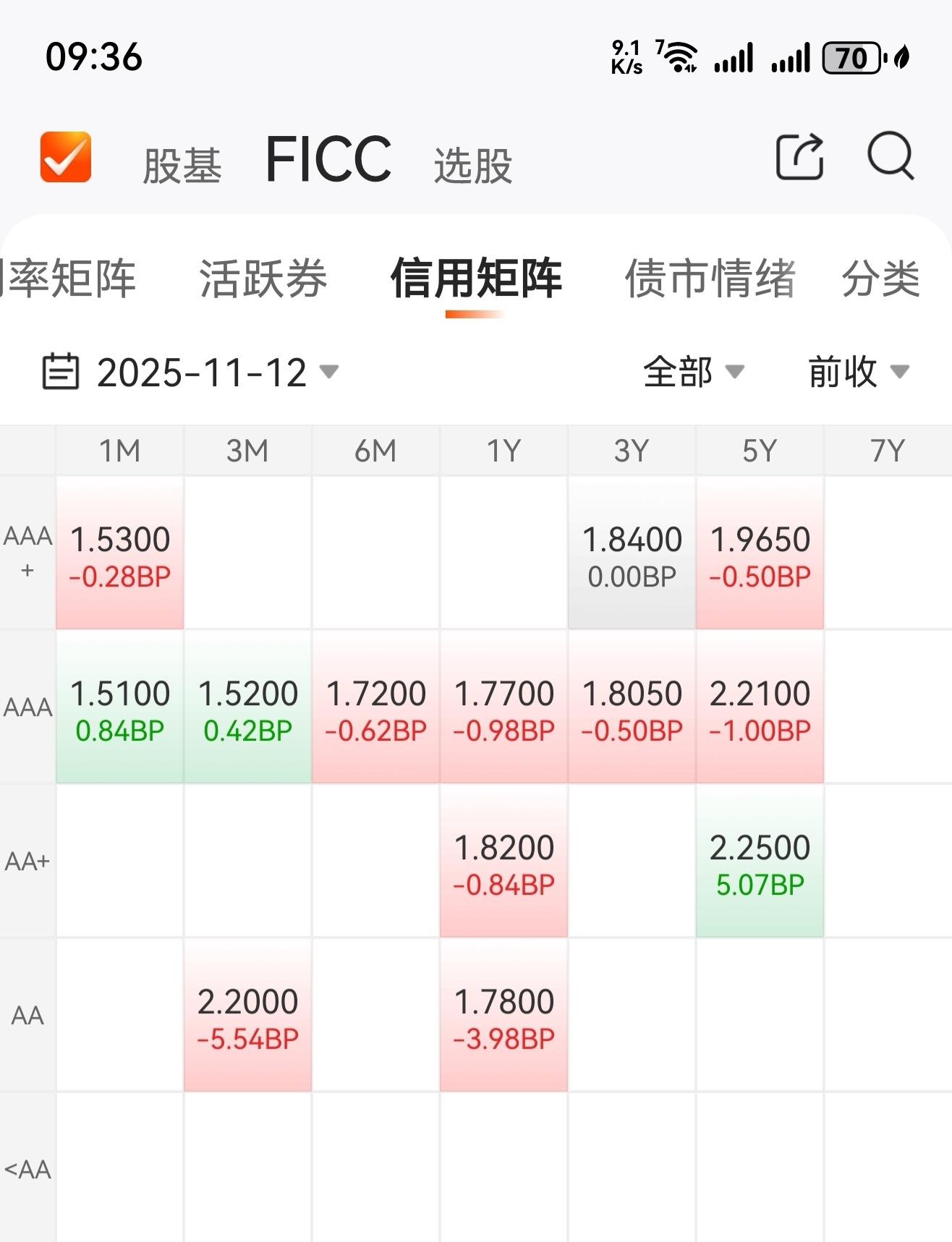 观察信用债:9红、1平、3绿。(红色,是涨。绿色,是跌。)