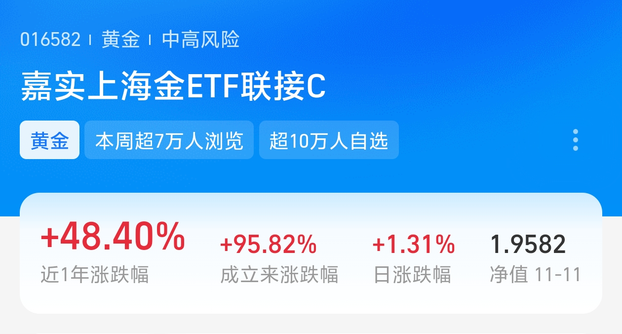 最近金价在区间里来回晃悠,明显在找新方向!$嘉实上海金ETF发起联接C$ 是真抗造,震荡行情里稳得一批,这种防御属性越看越安心~ 现在价位比前期高点回调不少,配置价值慢慢凸显出来了。我打算用定投慢慢参与,既不占用太多资金,又能接住当前机会,关键七天免手续费,分批投入超顺畅!对了,持有者讨论区6楼有红包,大家可以去蹲一波~ 后续国际局势还在变,黄金的避险buff大概率会继续生效,现在这个价格开始积累,长期看肯定能有好结果!