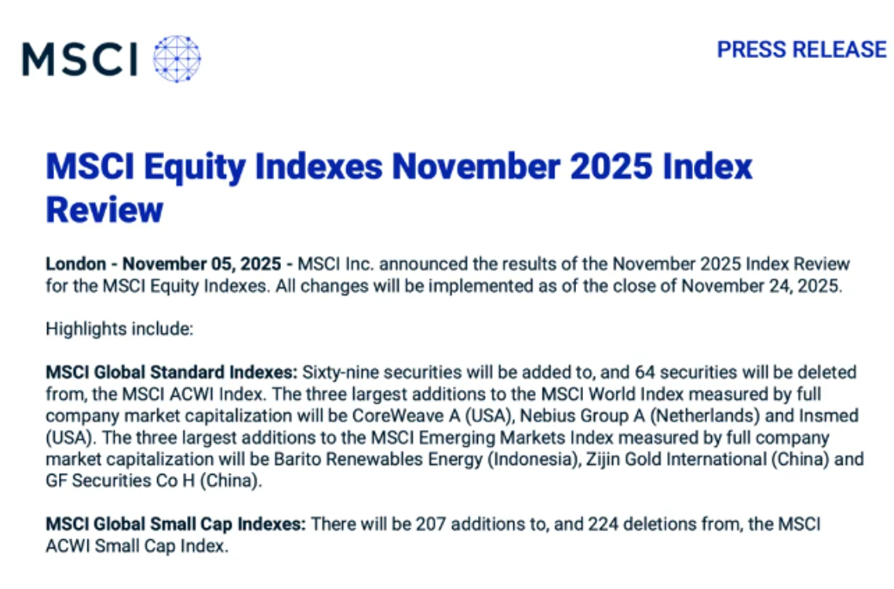 宝子们听说了么,最近MSCI公布的11月指数调整结果,直接把半导体板块推上了“C位”——华虹公司、长川科技、芯联集成等一众企业被纳入全球标准指数系列。这波操作,到底会给半导体芯片板块带来哪些“蝴蝶效应”?咱们从资金、行业、技术到未来预期,拆解一波。