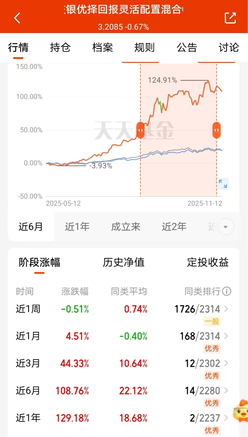$交银优择回报灵活配置混合C$这基金近一年涨129.18%直接领跑!近半年也涨了