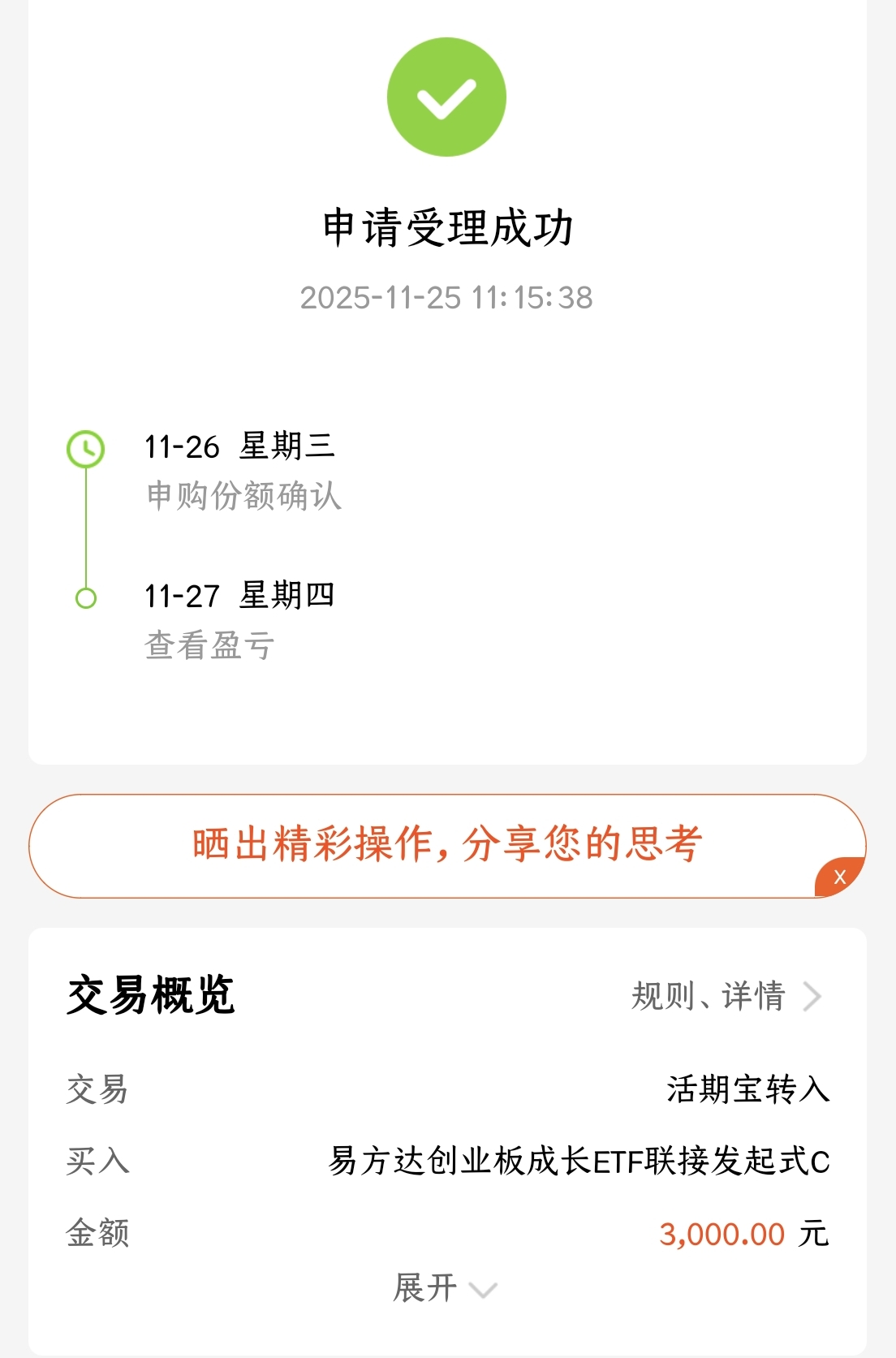 今天股市出现高开高走的态势,创业板成长板块表现尤为亮眼,其涨幅明显超越创业板综合指数和创业板50指数板块。$易方达创业板成长ETF联接发起式C(OTCFUND|021750)$重点投资宁德时代等一批高成长白马股,此类资产的盈利能力与增长潜力更为突出。从近一年的业绩数据来看,创业板成长指数累计收益水平远超创业板50和创业板指,展现出较强的超额回报能力。趁着行情才刚启动,先布局上车了,坐等起飞!