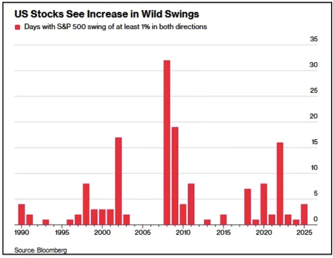 整体来看,也要看到,2023-2024年,美股的超低波状态,随着美国经济逐渐开始有软着陆迹象、本轮美股牛市已经来到中期之后,日内波动超过1%的次数(下图),预计会较前两年有所加大,也就是说,未来即使美股仍然趋势性向上,但是中间的波动不会小。