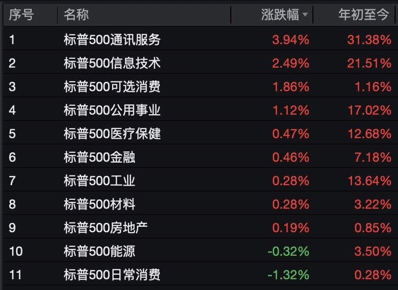 昨晚,从行业来看,标普500的11个一级行业中,通讯服务和信息技术,大幅领涨,而老登板块再次做了冷板凳。