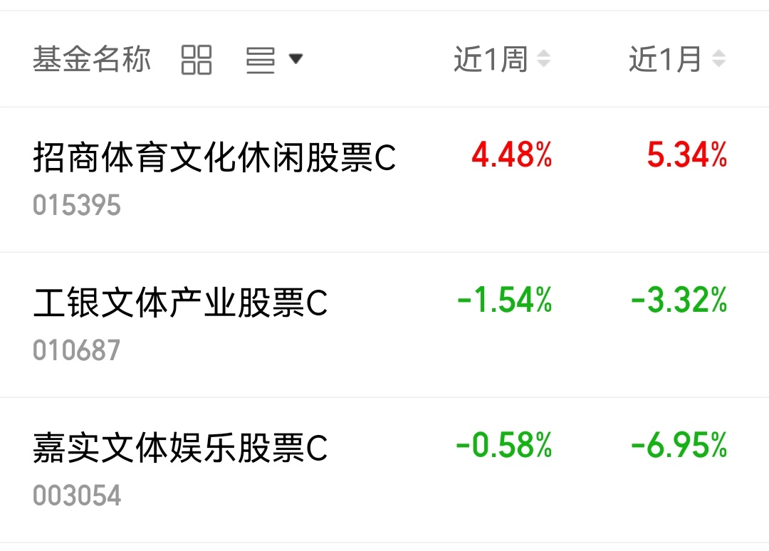 $招商体育文化休闲股票C(OTCFUND|015395)$近一周涨幅4.48%