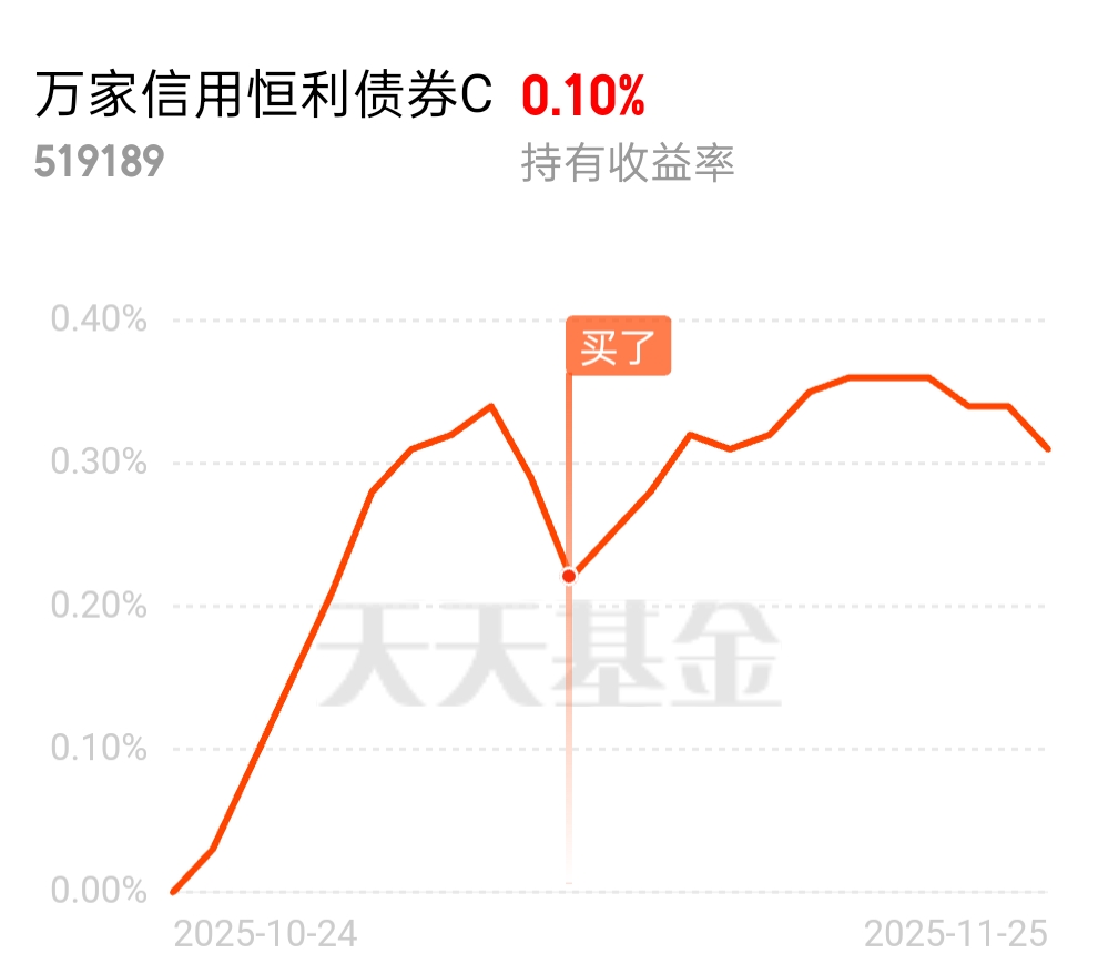 债市熊短牛长,回调也是加仓的好时机,正好可以再加一波$万家信用恒利债券C$,近1