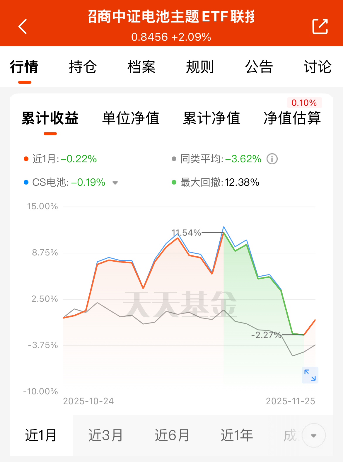 宝子们,今天又是跳水的节奏,早上赚不少,午后大缩水,大家对于现在的行情还在观望。电池板块前面调整不少。$招商中证电池主题ETF联接C(OTCFUND|016020)$今天还能维持个小红不错了,龙头厦钨新能、宁德时代产能加速,产业链技术迭代加速落地,我觉得基本面没问题,现在就是耐心等待的个过程。
